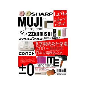本期Select Shop精心介紹了去東京必買的潮流設計家電200件,深度介紹品牌故事、產品設計、旗艦店位置……,從風格獨特的廚房家電,到點綴室內設計概體的風格家電小物,從來沒想過,電話、吸塵器、燈具……都能這麼特別可愛!本書更介紹在日本享有大人氣,同樣值得推薦的歐美品牌設計家電,除了精美的圖說之外,每ㄧ件產品的極簡風格都絕對挑起你的購物慾望!更請來五位日本設計大師,包括設計領域橫跨建築與產品設計的鄭秀和、替家電鋼硬材質加入柔軟線條的柴田文江、總把童心趣味帶入設計的喜多俊之、將哲學思維?入設計理想的?井直樹,以及最受期待的年輕設計師坪井浩尚,五位設計師共同講述各自的家電設計理念,從大師對談預測未來設計趨勢!